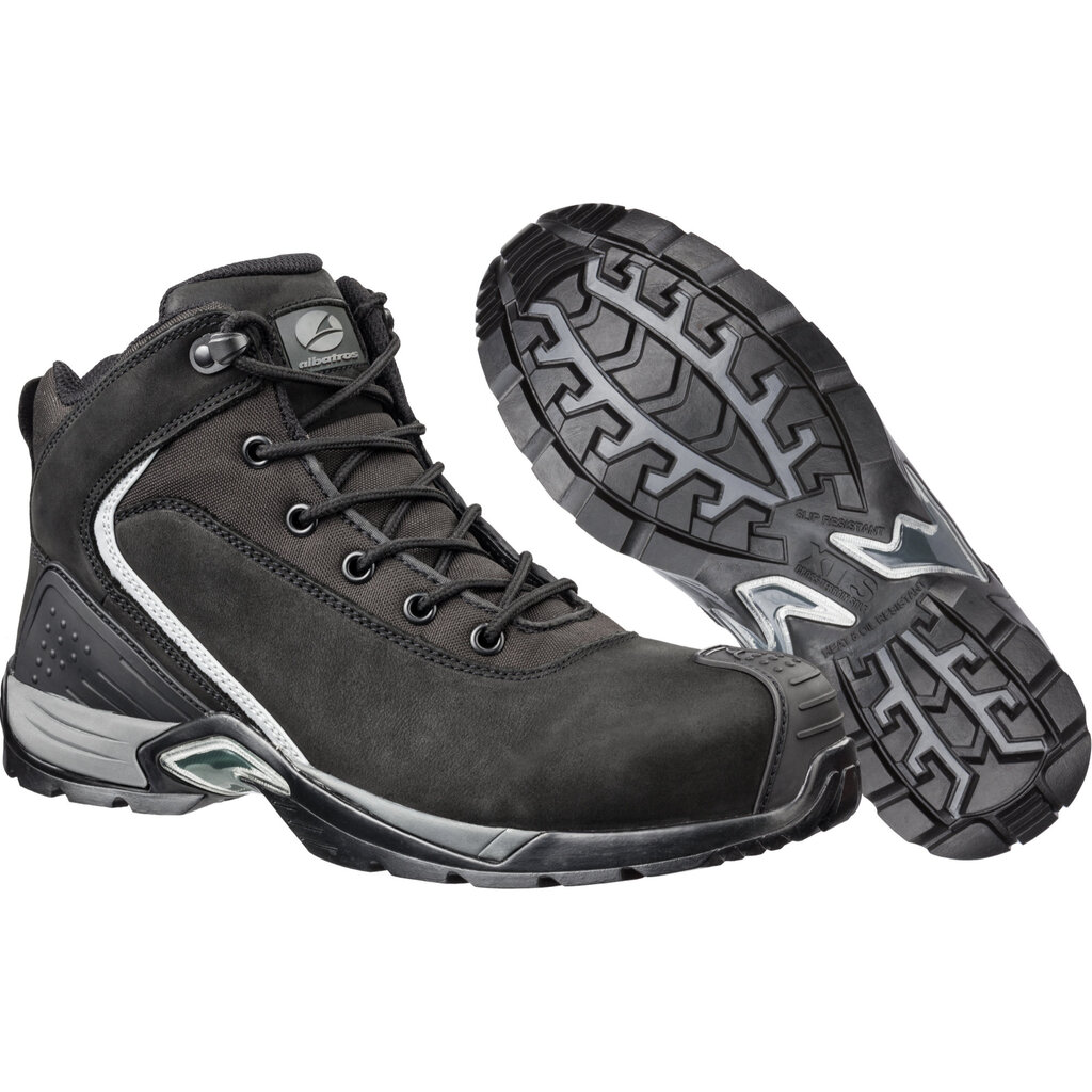 Zwarte hoge Lichtgewicht S3 werkschoenen van Albatros model 63.169.0. Deze zwarte veiligheidsschoenen zijn netjes en vlot tegelijk dankzij de strakke afwerking en de reflecterende en grijze details. Leverbaar in laag en hoog model; dit is de versie met een hoge pasvorm en dit geeft meer ondersteunding rondom de enkels. De comforabele pasvorm en de uitgebreide bescherming maken deze hoog model schoenen geschikt voor vele (werk)situaties.