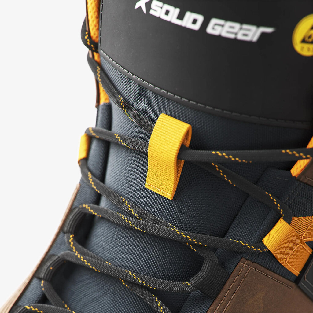 Moderne midhoge veiligheidsschoen die tot in de kleinste details is ontworpen voor optimaal comfort. Het bovenwerk is gemaakt van LWG-leer met een nubuck afwerking en CORDURA®-vezels voor extra slijtvastheid. De voering is gerecycled, wat zorgt voor een uitstekende vochtregulatie en een aangenaam voetklimaat. De binnenzool van dempend, ademend PU-schuim met een open celstructuur biedt extra comfort. De stabiele PU-middenzool bevat een geïntegreerde nylon cambreur voor extra ondersteuning. De PU-buitenzool is olie- en slipbestendig, waardoor je altijd de perfecte grip hebt op verschillende ondergronden. Deze schoen is volledig metaalvrij, met een glasvezel veiligheidsneus en metaalvrije spijkerbescherming. Bovendien voldoet het aan de ESD-normen volgens EN IEC 61340-5-1:2016.
