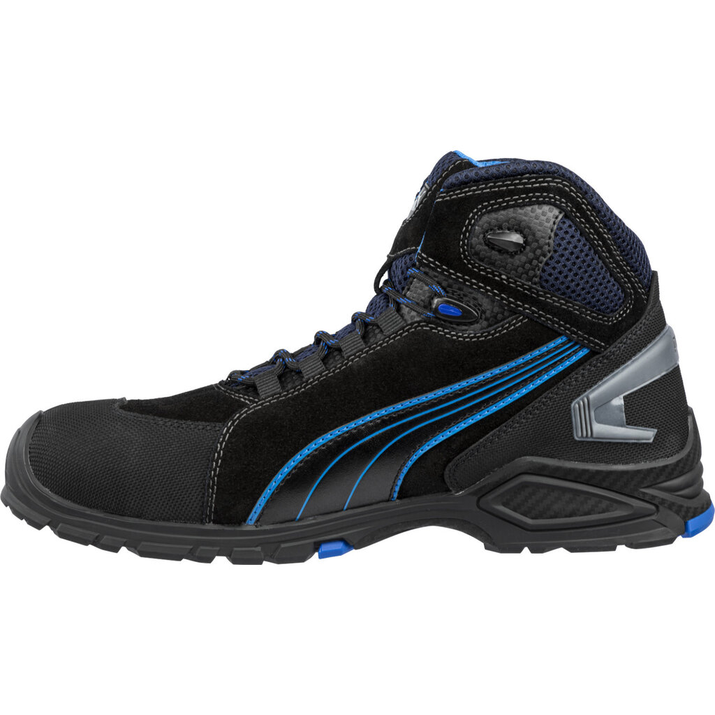 De PUMA Rio Black MID uit de Metro Protect-serie bewijst dat veiligheid en een moderne lifestyle perfect samengaan. Deze halfhoge veiligheidsschoen is gemaakt van hoogwaardig suèdeleder, wat zorgt voor een soepele pasvorm en een professionele uitstraling. Dankzij het halfhoge model geniet je van extra steun rondom je enkels, terwijl de BreathActive voering je voeten de hele dag fris en droog houdt.