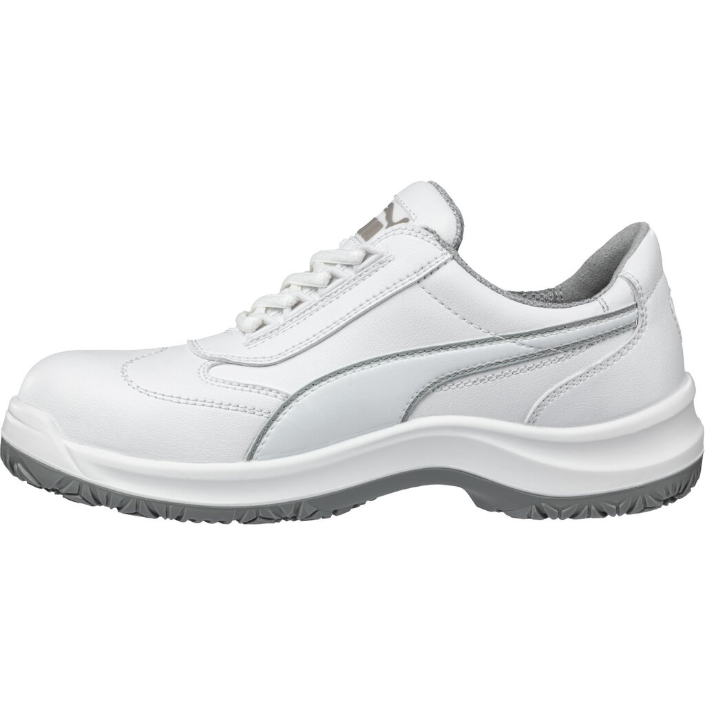 Werk je in een omgeving waar hygiëne en veiligheid hand in hand gaan, zoals de zorg, horeca of de voedingsindustrie? Dan is de PUMA Clarity Low S2 jouw ideale partner. Deze lage veiligheidsschoen is uitgevoerd in hoogwaardig microvezel, wat niet alleen vloeistoffen afstoot, maar ook bijzonder eenvoudig te reinigen is. Dankzij het lichte gewicht en het sportieve ontwerp van PUMA voelt het alsof je op sneakers loopt, terwijl je voeten optimaal beschermd zijn.