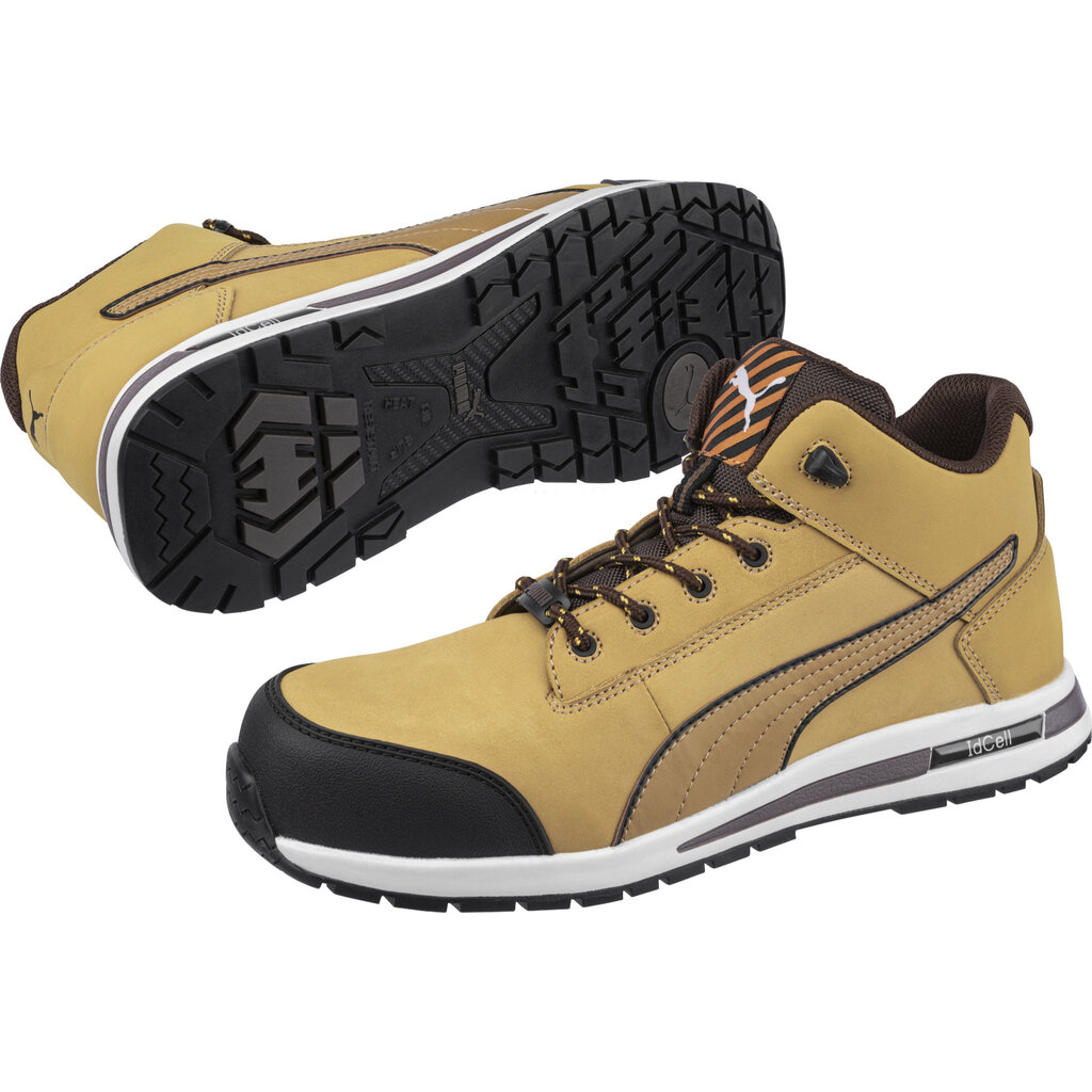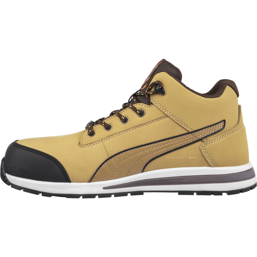 Zoek jij een werkschoen die niet alleen veilig is, maar er ook nog eens fantastisch uitziet? De PUMA Dash Wheat MID uit de Urban Protect-serie biedt je de perfecte combinatie van een moderne, sportieve uitstraling en hoogwaardige bescherming. Deze S3-gecertificeerde schoen is uitgevoerd in een stijlvolle wheat-kleur en is voorzien van een glasvezel versterkte veiligheidsneus en een flexibele FAP-antiperforatiezool, zodat je voeten optimaal beschermd zijn zonder in te leveren op bewegingsvrijheid. De werkschoenen zijn volledig metaalvrij en voorzien van een ingespoten voorste kapbescherming, waardoor de schoenen lichter, maar toch bijzonder duurzaam zijn.