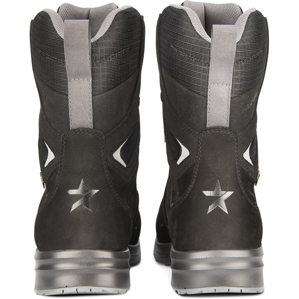 Dankzij de glasvezel neusbescherming en zachte nagelbescherming biedt de Talus GTX High hoge veiligheid voor op de werkvloer. Met een bovenwerk van duurzaam leer van LWG en lichtgewicht microvezel. Het GORE-TEX® membraan maakt deze schoen daarnaast zeer ademend. Dit model is voorzien van een Speed-vetersluiting, waardoor je snel uit en in de schoenen stapt. Liever je schoenen aantrekken op de traditionele manier? Geen zorgen, je kunt ze gemakkelijk vervangen door normale veters. Inclusief neusbescherming van glasvezel en een zachte nagelbescherming.